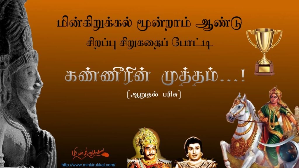 இளைஞனின் பார்வை மீண்டும் அவளின் கருவண்டு விழிகளைத் தீண்டியது.அஞ்சனமிட்ட நயனங்களும் அதற்கு குடைபிடித்த இமைகளும் சின்னஞ்சிறு எள்ளுப்பூவாய் நாசியும் இருப்பதே தெரியாமல் வடிவாய் அமைந்திருந்த நீரோட்டமான இதழ்களும்…. இளைஞனின் மனதில் பெரும் போராட்டம். இவளின் விழிகளில் காணும் ஈரம் அதிகமா  ? இதழ்களிலா…?